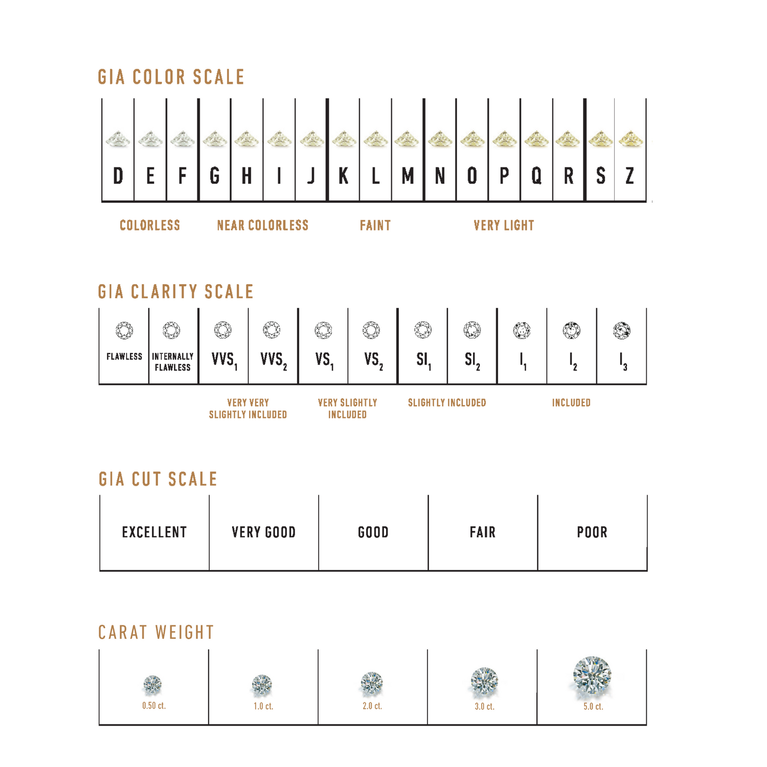 Te recomendamos usar la escala de las 4C's universal de GIA para orientarte a seleccionar la piedra perfecta!
